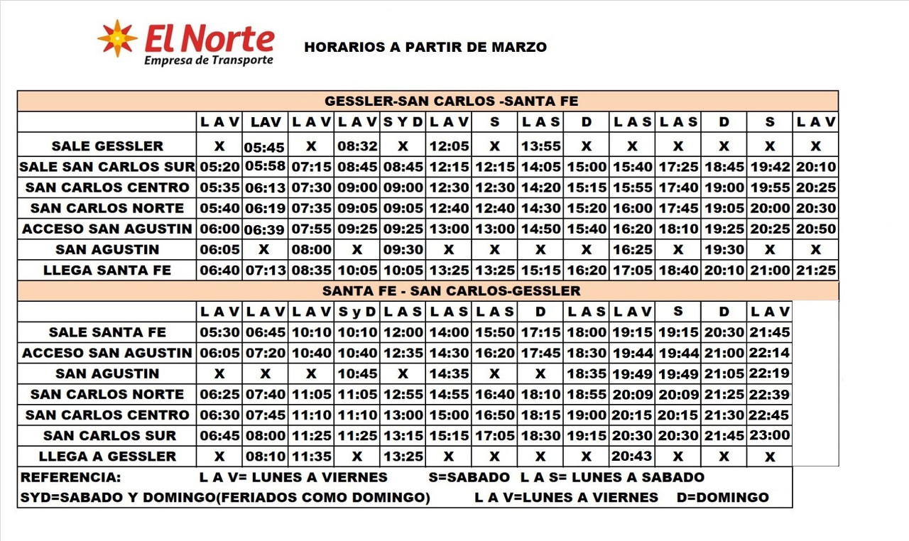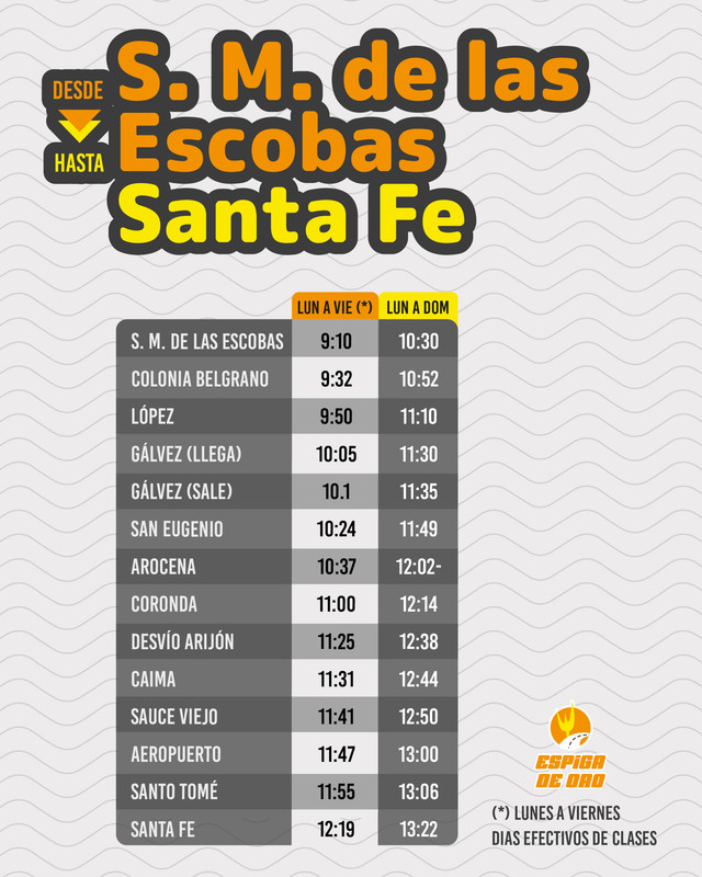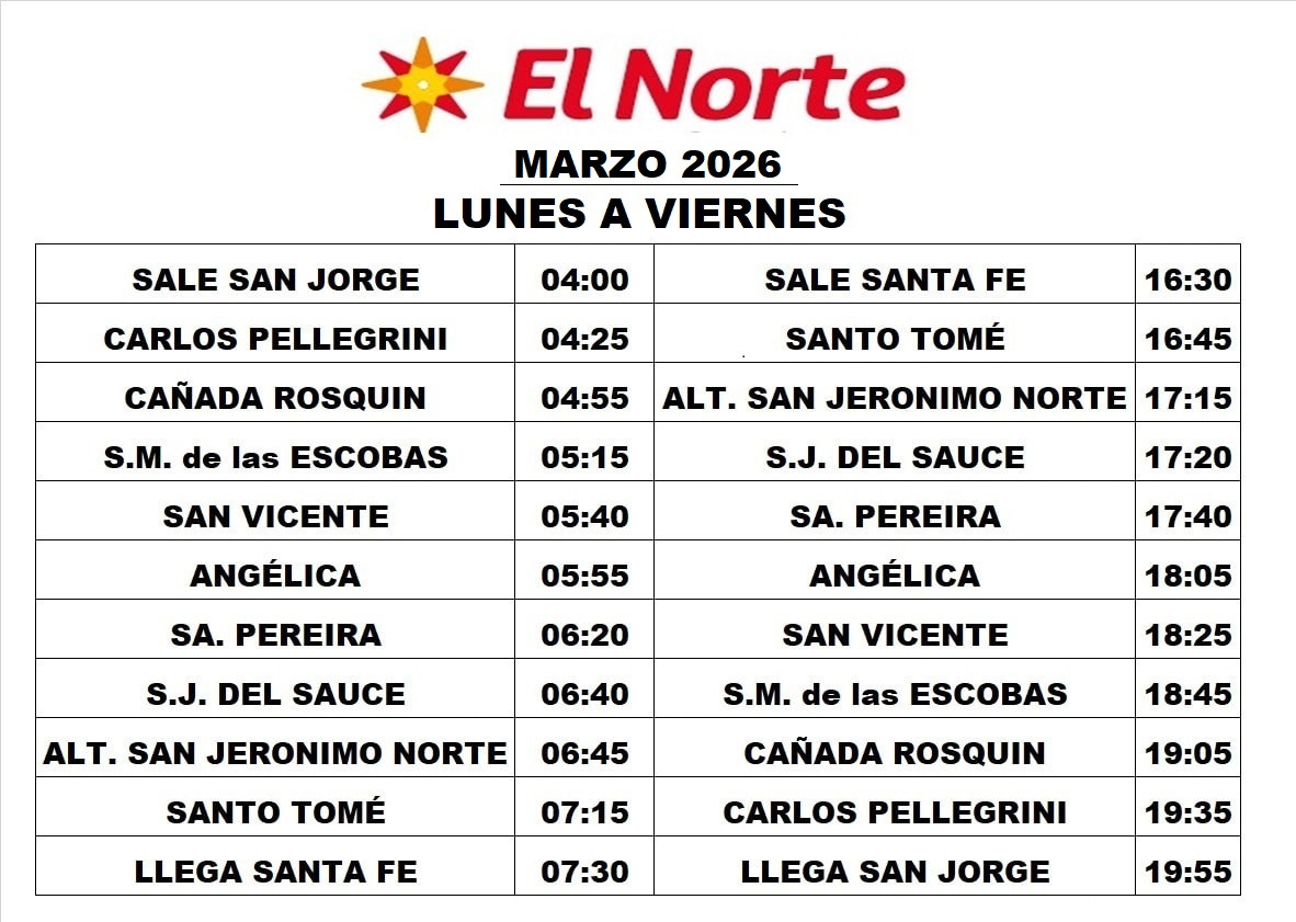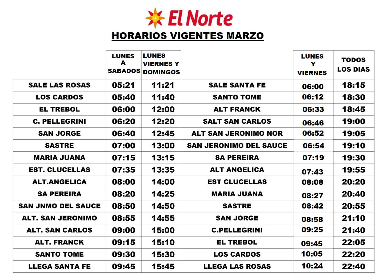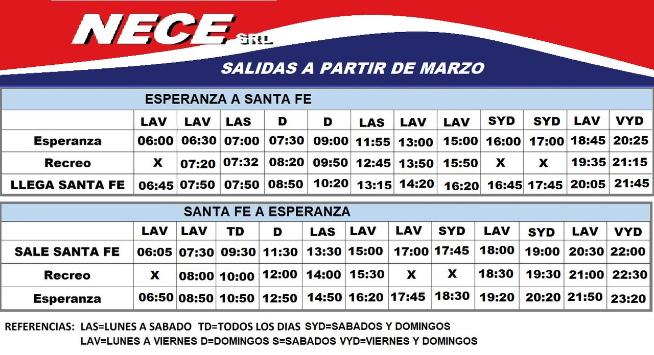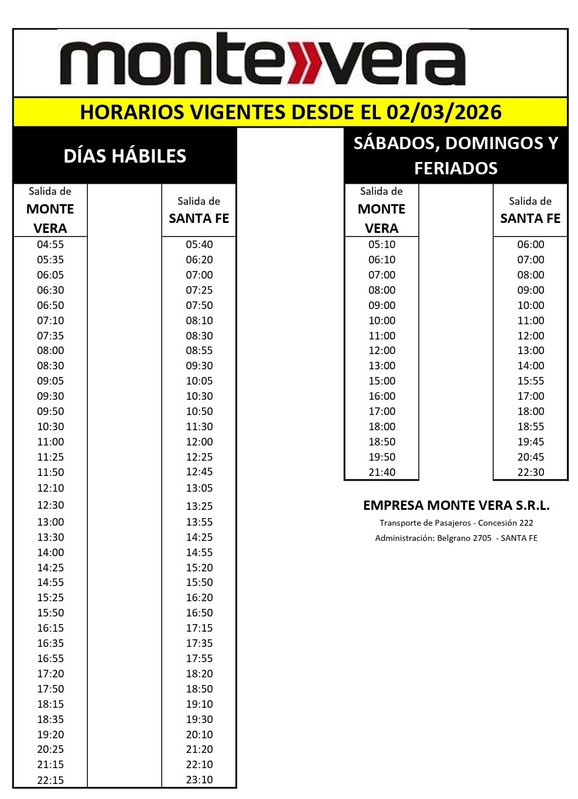 Horarios entre SANTA FE Y MONTE VERA POR RUTA 2 EMPRESA MONTE VERA Revisado 4/3/26 Fuente