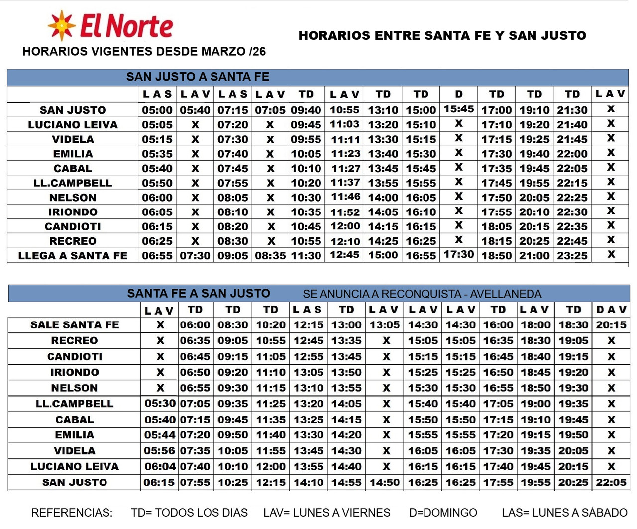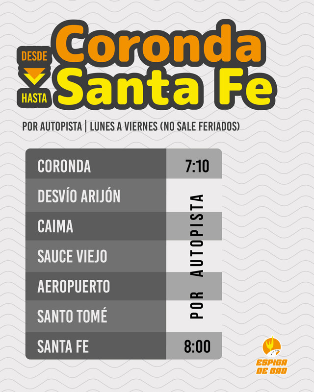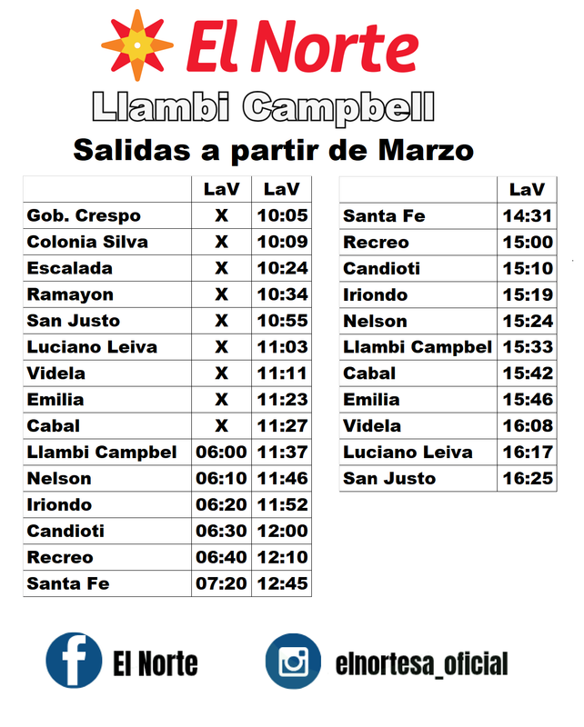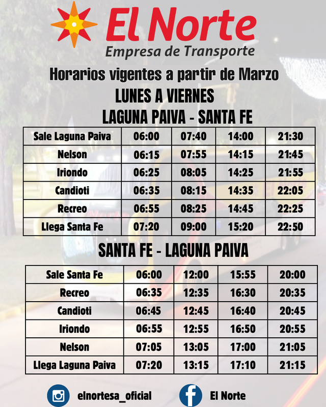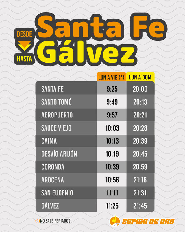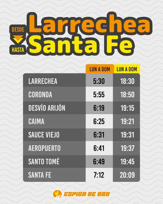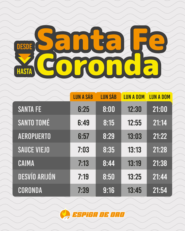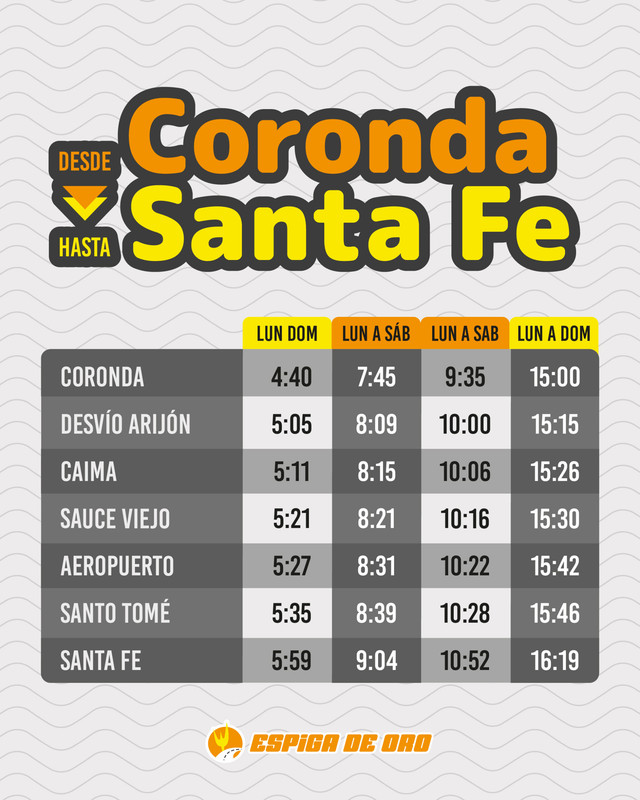 Horarios entre SANTA FE Y MONTE VERA POR RUTA 2 EMPRESA MONTE VERA Revisado 4/3/26 Fuente